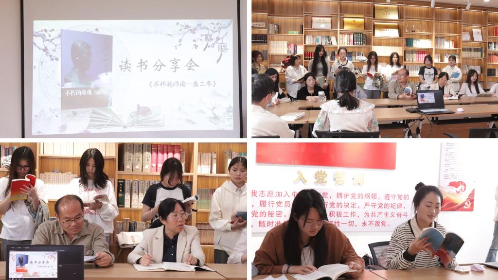 为陶冶在校大学生文学情操,引导师生多读书,读好书,促进良好的班风、学风建设,传承弘扬孟二冬精神,汲取奋进力量,文学与传媒学院于4月23日下午在孟二冬支部举办了《不朽的师德——孟二冬》读书分享会。文学与传媒学院党委副书记刘影、分团委书记王磊及部分学生代表参加,活动由团委书记王磊主持。