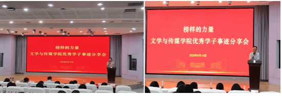 为发挥榜样引领作用,助力学子明确学业和职业发展方向,6月16日下午,文学与传媒学院在工科楼招聘大厅举行“榜样的力量”优秀学子事迹分享会,学院党委书记郝景东、院长李月云、全体辅导员以及150多名非毕业班学生参加。活动由党委副书记刘影主持。