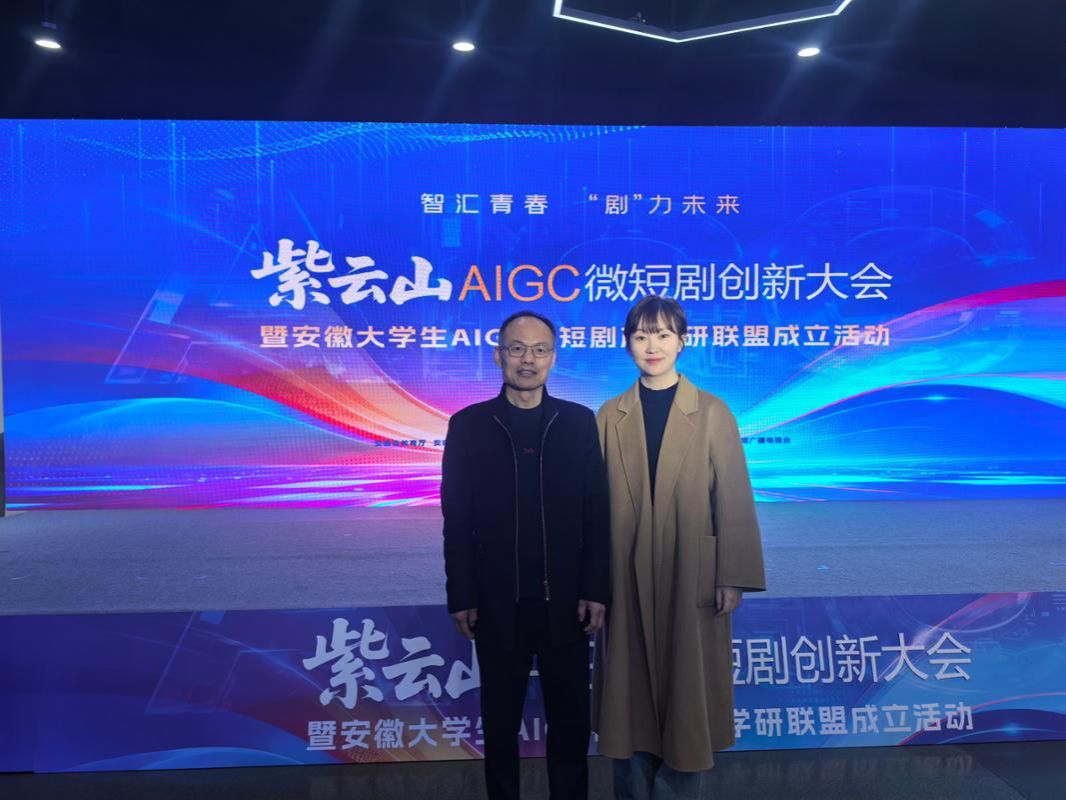 3月24日上午,紫云山AIGC微短剧创新大会暨安徽大学生AIGC微短剧产学研联盟成立活动在合肥市紫云山(包河)文化创意产业园隆重举行。我校党委委员、副院长王红艳,文学与传媒学院党委书记郝景东、教师代表李雅琪应邀参会。