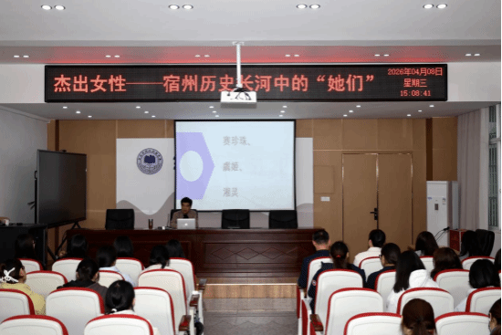 4月8日下午,文学与传媒学院邀请宿州市广播电视台主任记者李晓江举办“杰出女性——宿州历史长河中的‘她们’”学术报告会。讲座由文学与传媒学院党委书记郝景东主持。