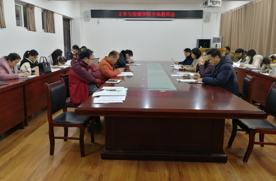 1月3日14:40,文学与传媒学院在教A303召开全体教师会议。会议由院长蒋宗霞主持,党总支书记李月云、副书记王绍卫、副院长张德岁及全体教师参会。