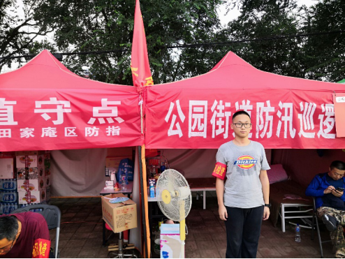 18新闻赵志成介绍了他投入抢险抗洪第一线的情况。在淮南市田家庵区团委发布防汛救灾青年突击队招募令后,他找到街道的防汛招募负责人,报名参加志愿活动,主要负责值班任务。因为是男生,他主动承担起晚上的巡线工作,从下午6点到24点。巡线时需要带上铁锹,不断地拍打斜坡表面,检查斜坡土层是否稳固。由于土地坑洼湿滑,背水坡上还有杂草蚊虫,每走一步都需要注意。他说道:“警戒线外,万籁寂静,淮河岸边的万家百姓早已进入梦乡,安宁祥和属于警戒线外的城市。因有人逆行而上,守一方安澜,一方百姓才得以远离危险。大坝上随处都有党旗飘扬,每一段都有党员带领着志愿者们冲锋在前。火红的党旗高涨了我们战胜洪水的信心。”