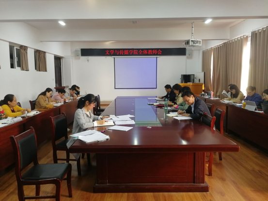 10月21日下午2:40,文学与传媒学院在教A303召开全体教师教学工作会议,党总支书记李月云、副书记王绍卫、副院长张德岁及全体教师参会。会议由院长蒋宗霞主持。