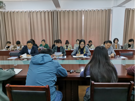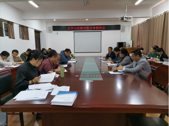 4月28日下午1:30,文学与传媒学院在教A303召开全体教师教学工作会议,院长蒋宗霞、党委书记李月云、副书记王绍卫、副院长张德岁及全体教师参会。会议由蒋宗霞主持。