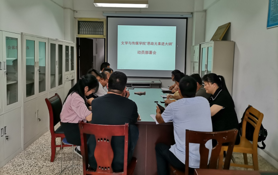 为进一步推动课程思政建设,文学与传媒学院于9月6日下午2:30在皖北方言文化研究所召开“思政元素进大纲”动员部署会,党委学工部(学生处)部长李月云,文学与传媒学院党委书记杨文艺,党委副书记、院长张德岁及全体教学管理人员参会。会议由张德岁主持。