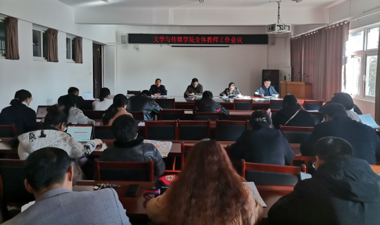 11月10日下午2:30,文学与传媒学院在教A303召开全体教师工作会议,党委书记杨文艺,党委副书记、院长张德岁,党委副书记、纪委书记刘影,副院长李娟,副院长满建及全体教师参会。会议由张德岁主持。