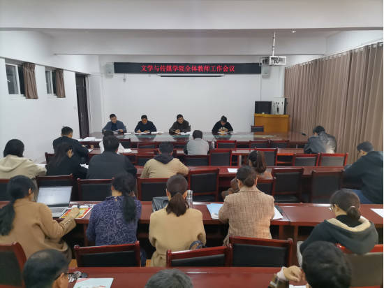 11月17日下午3点,文学与传媒学院在教A303召开全体教师工作会议,党委书记杨文艺,党委副书记、院长张德岁,副院长李娟,副院长满建及全体教师参会。会议由张德岁主持。