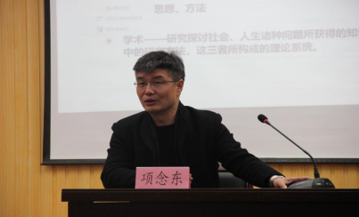 项念东教授以梁启超的《学与术》为开篇,并用鲜活的例子讲述了“学”、和“术”的具体含义。项教授主要围绕“奇理斯玛权威”、“学术研究与奇理斯玛权威”、“学术论题的发现”和“读书、治学与写作”这四个方面展开,进行本次讲座。