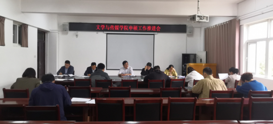 4月24日下午,文学与传媒学院在教A303召开申硕工作推进会,党委书记杨文艺,党委副书记、院长张德岁,党委副书记、纪委书记刘影,副院长李娟,副院长满建及科级以上干部和教研室主任参加会议。会议由张德岁主持。