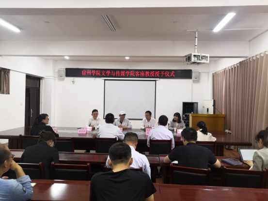 杨书记首先代表学院对四位客座教授表示诚挚的欢迎和祝贺。会上,杨书记就文学与传媒学院学院发展历程、专业设置、人才培养目标做介绍。李娟介绍了四位客座教授的基本情况,她表示,此次聘任的四位客座教授在业内具有较突出的业绩,文传学院十分重视师资队伍的建设,四位客座教授加盟文学与传媒学院是我院推进教育教学改革的重要举措。