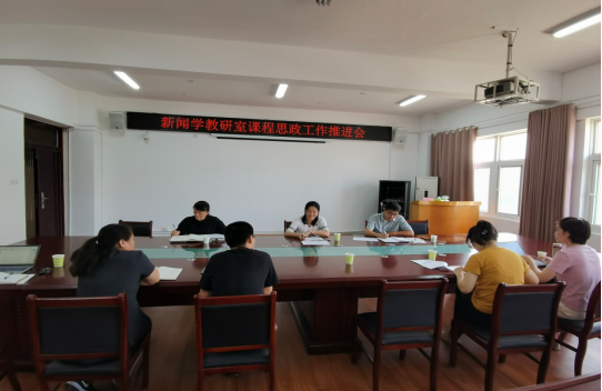 为深入贯彻落实教育部《高等学校课程思政建设指导纲要》文件精神,把思想政治工作贯穿教育教学全过程,进一步推进课程思政建设提质增效。2022年9月2日上午8点30分,文学与传媒学院新闻学教研室顺利召开课程思政工作推进会。宿州学院学工部部长李月云、文学与传媒学院党委书记杨文艺、文学与传媒学院教学副院长李娟以及新闻学专业教研室全体教师参加。会议由杨文艺主持。