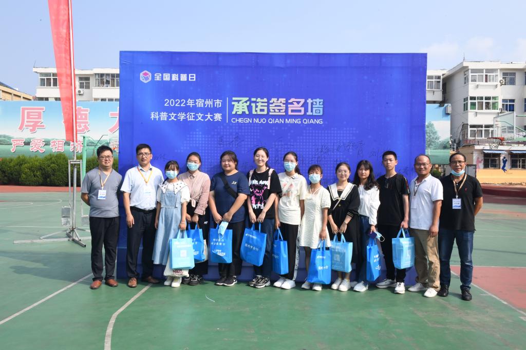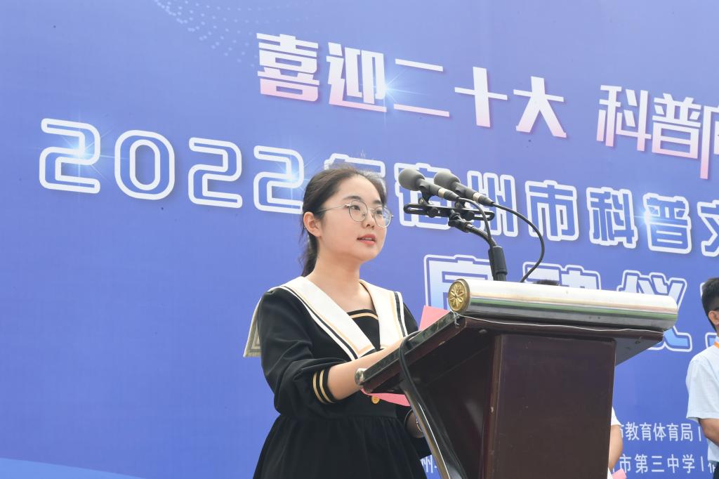 仪式上,宿州学院文学与传媒学院学生郑泽荃代表宿城各大中专院校、中小学在校学生宣读《全民科普倡议书》,向全社会发出倡议,号召社会各界人士从我做起,做科学知识的传播者、科学普及的践行者、科学精神的弘扬者,让科学普及贴近实际、贴近日常、贴近群众,切实做到科技为民服务。
