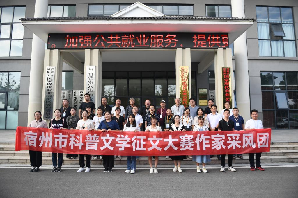 仪式结束后,师生代表团分别参观了宿州市科技馆和埇桥国家现代农业产业园,全市科技工作者、作协专家代表、师生代表在现代农业产业园会议室召开了座谈会。大家就科普和文学的结合方式展开了热烈讨论,文传学院邵一平博士从科普的目的出发,提出了在此次文学创作活动中科普为第一性,审美为第二性的宝贵学术意见。科技工作者们也积极参与讨论,分享了在工作中的心得体会。