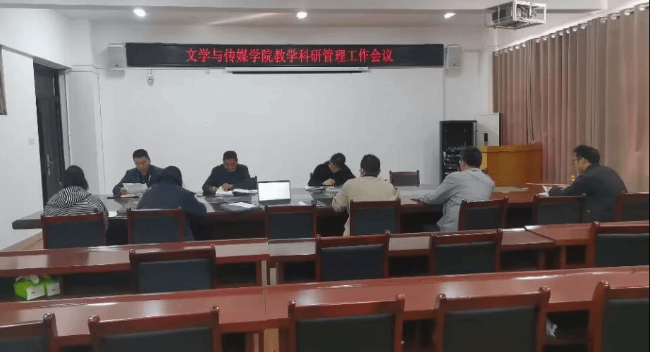 10月17日下午,文学与传媒学院在会议室召开了第八周教学科研管理工作会议,院长张德岁主持会议,科研副院长满建、教学副院长李娟和相关行政人员参加了会议。