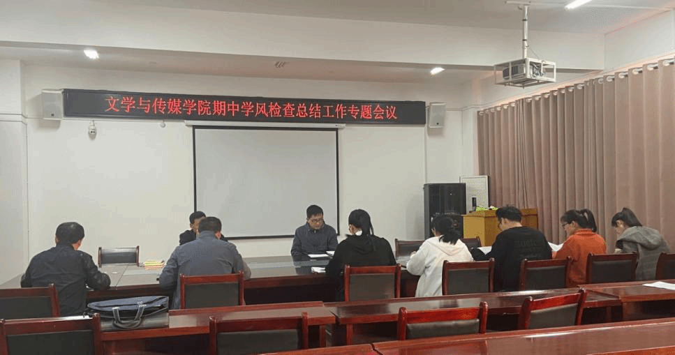 为落实“立德树人”根本任务和“三全育人”综合改革任务,践行“笃学 笃行 笃信”的优良学风,促进学生全面成长成人成才,2022年11月2日,文学与传媒学院在教学楼A303会议室召开期中学风检查总结工作专题会议。文学与传媒学院党委书记杨文艺、党委副书记、院长张德岁,党委副书记、纪委书记刘影、副院长李娟、满建及全体科级干部、辅导员、教务员参加了本次会议,会议由杨文艺书记主持。