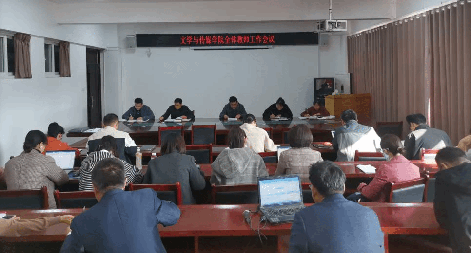 11月2日下午,文学与传媒学院在教A303召开全体教师工作会议,党委书记杨文艺,党委副书记、院长张德岁,党委副书记、纪委书记刘影,副院长李娟、满建及全体教师参会。会议由张德岁主持。