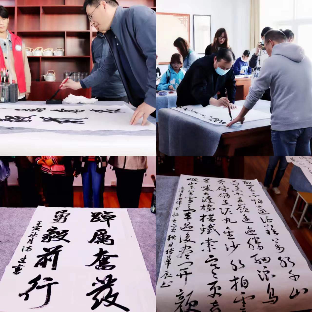 我院书法老师满建和傅华辰作为评委,也热情参与到书法比赛现场中来,分别书写了“踔厉奋发 勇毅前行”和《七律·长征》,以此来激励同学们勇敢的面对困难,继续为实现中华民族的伟大复兴而不懈奋斗。