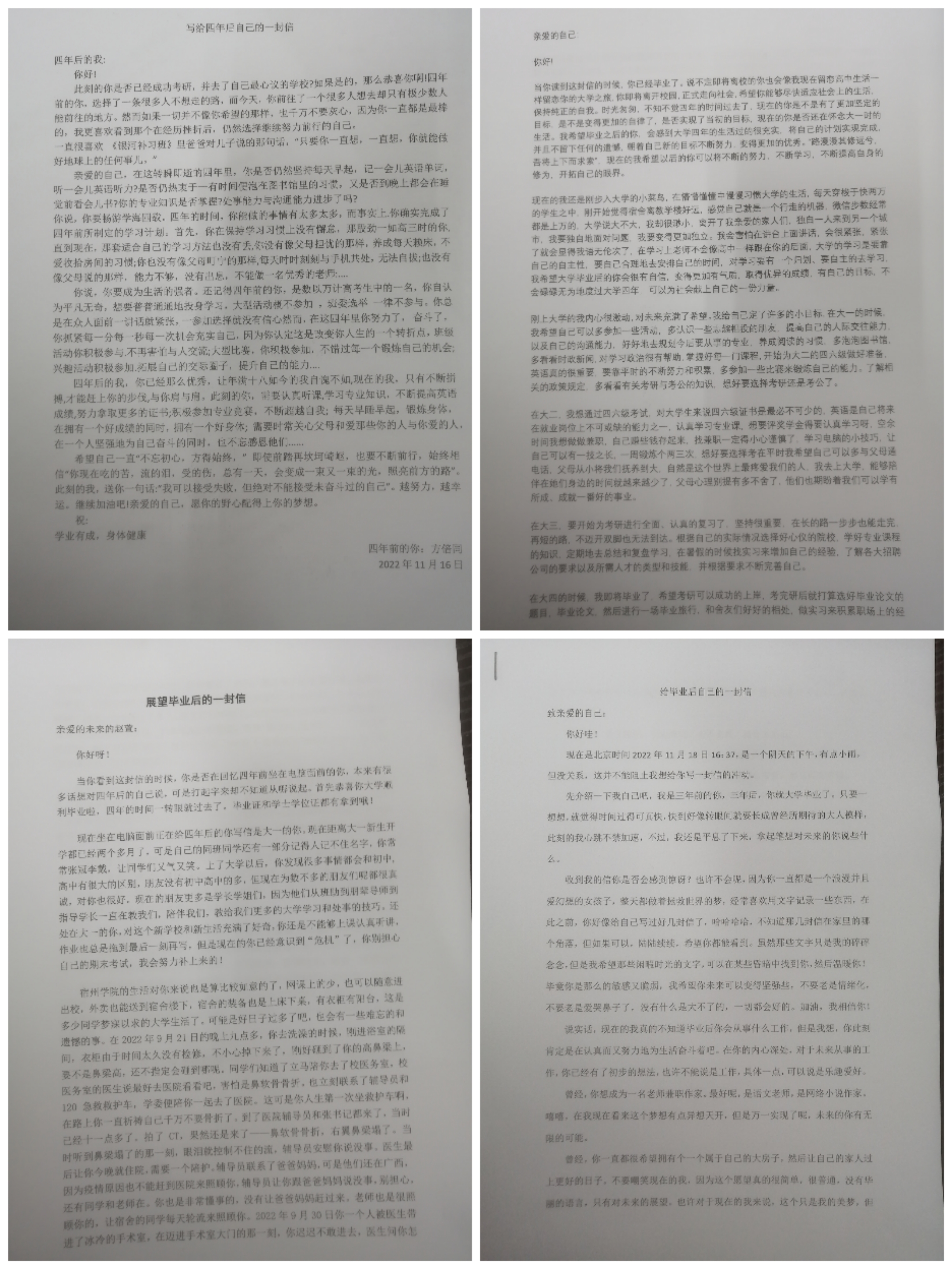 为培养大学生积极的心理品质,加强心理健康教育,鼓励学生拿起笔用书信将自己的心情抒发出来,通过对毕业的展望来积极面对未来的大学生活。2022年11月18日-28日,宿州学院举办十八届心理健康月活动之“纸短情长—秋日时光信”比赛,比赛由文学与传媒学院承办。