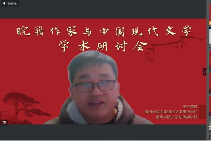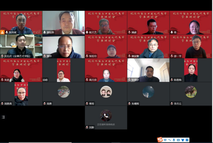 12月17日,文学与传媒学院采取线上方式举办“皖籍作家与中国现代文学学术研讨会”,安徽师范大学谢昭新教授、池州学院谢家顺教授、安徽科技学院李坚怀教授和安徽艺术学院沈后庆教授应邀参加此次研讨会,中国语言文学重点学科项目组成员、汉语言文学教研室全体教师参会。
