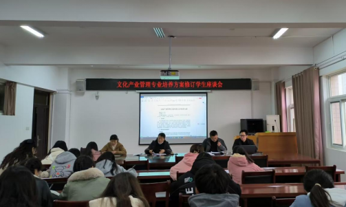 在人才培养方案的研讨环节,学生们畅所欲言,分别就文化产业管理专业制定的人才培养目标、专业特色、方向设置和课程结构等内容展开热烈讨论,并对培养方案的修订提出了一些具体的意见和建议,包括增设语言表达和文案写作等课程,将一些实用的实践课程和帮助考证的课程提前,将部分有知识点重合的课程进行合并,进一步加强课程与人才市场的衔接性,完善选课机制等。