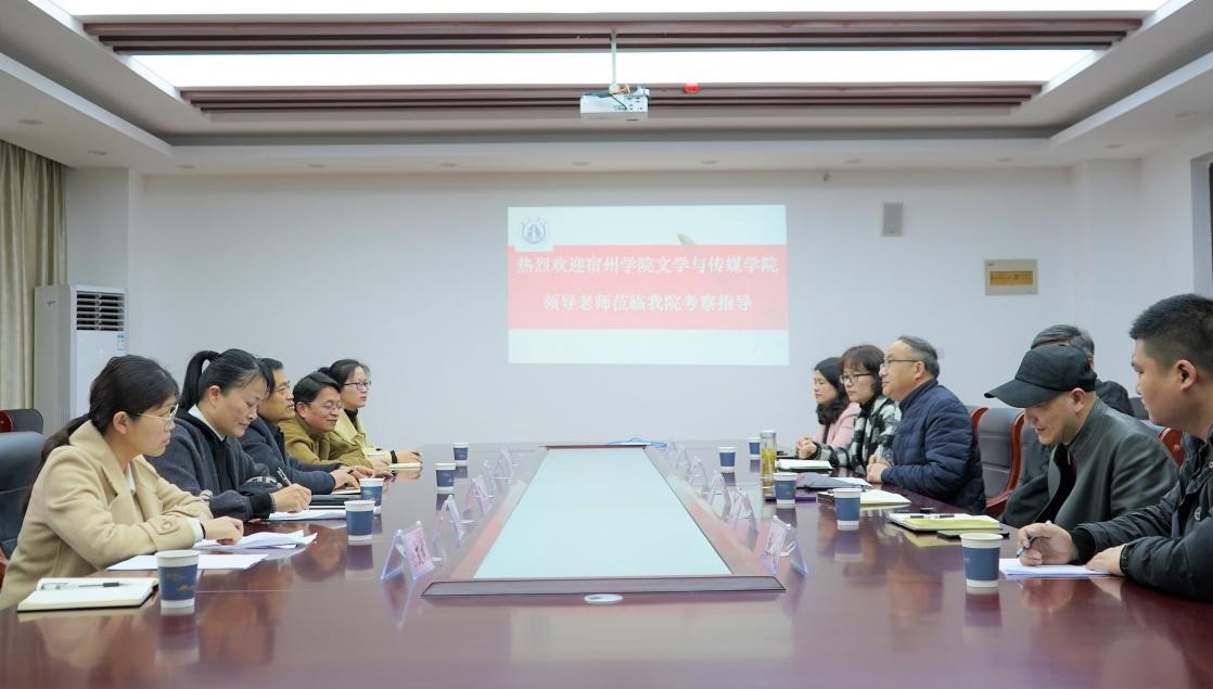 张德岁院长重点介绍了文学与传媒学院在人才培养、学科专业建设、横向科研项目立项等方面的经验。并就黄山学院文学院实训室建设和人才培养方案修订的特色做法进行了讨论和学习。