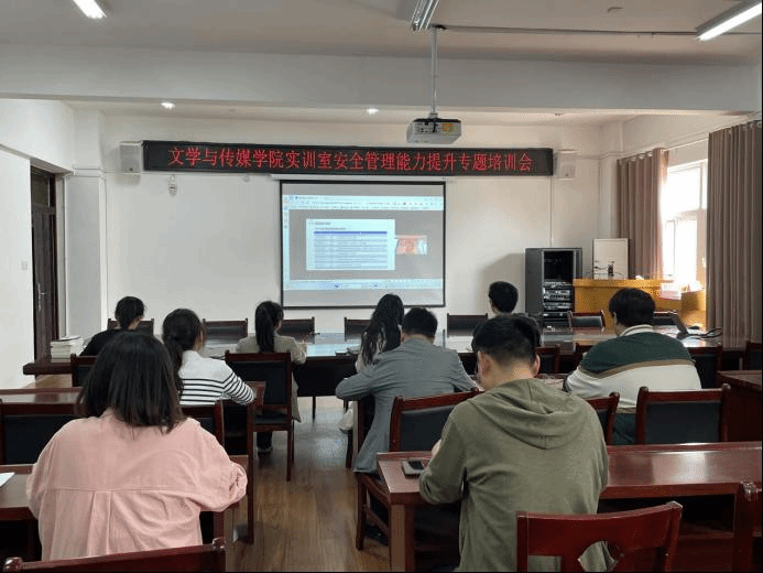 为贯彻落实《教育部关于加强高校实验室安全工作的通知》文件要求,切实增强实训管理人员安全责任意识,提升实训安全管理水平,文学与传媒学院于4月19日组织开展实训室安全管理能力提升专题培训会,实训室安全管理人员及使用实训室教师参加了此次培训。。
