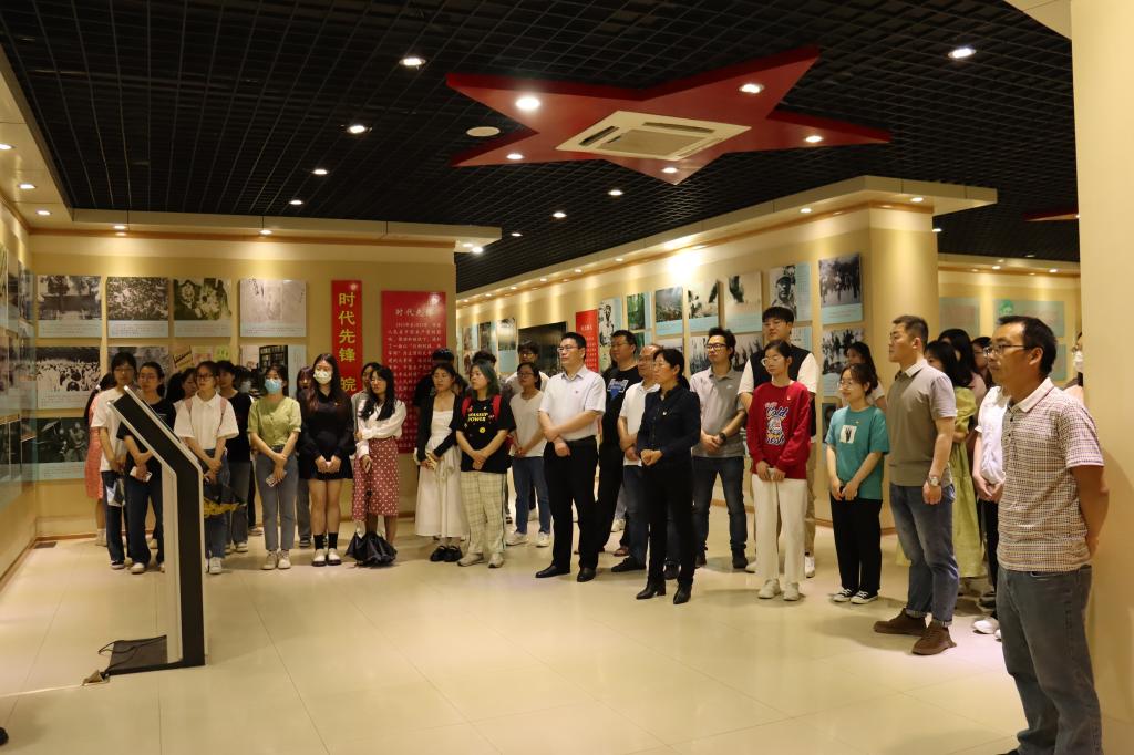 2023年5月17日上午10:00,按照文学与传媒学院主题教育理论学习读书班方案安排,学院处科级干部、党支部书记和2023届毕业生党员到学校图书馆四楼革命传统教育馆参观学习,开展主题教育实地访学活动。