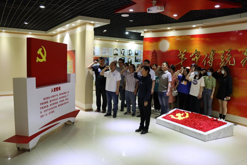 参观结束后,在学院党委副书记、纪委书记刘影的带领下,全体党员面向党旗庄严宣誓。