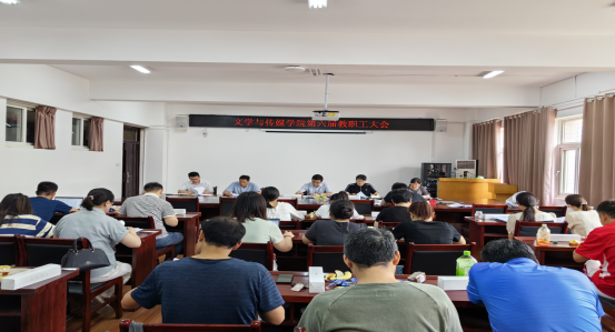 为推动学习贯彻习近平新时代中国特色社会主义思想主题教育走深走实,进一步凝聚教职工的思想共识,充分发挥二级教职工大会在促进学院事业发展中的重要作用,6月21日下午文学与传媒学院在教学楼A303召开第六届教职工大会,党委书记杨文艺,党委副书记、院长张德岁,党委副书记、纪委书记刘影,副院长李娟,副院长满建及全体教师参会。