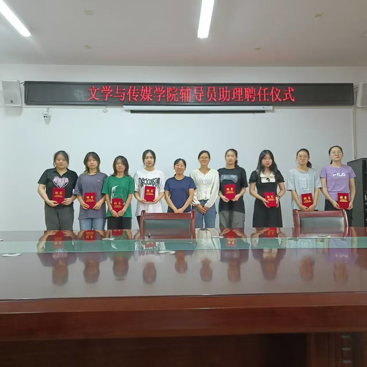 在活动仪式上,每一位辅导员助理从副书记的手中接过这份沉甸甸的聘书,这不仅是一份荣光,更是一份责任。每一位辅导员助理都怀着饱满的热情,对未来的工作也充满着绝对的信心,相信自己能够成为“心中有爱,手中有艺”的辅导员助理,在学院与学生之间架起一座沟通的桥梁。刘影也对新一届辅导员助理成员提出了讲学习、善研究、懂配合等相关要求。