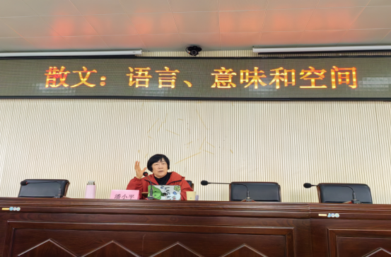 潘小平围绕“散文:语言、意味和空间”这个话题,首先对散文的发展作了较全面的线性梳理,总结出散文具有非线性、共时态、大信息、快节奏的特点。随后从“散文的语言”“散文的意味”“散文的空间”三个方面系统地论述了散文写作的要点。