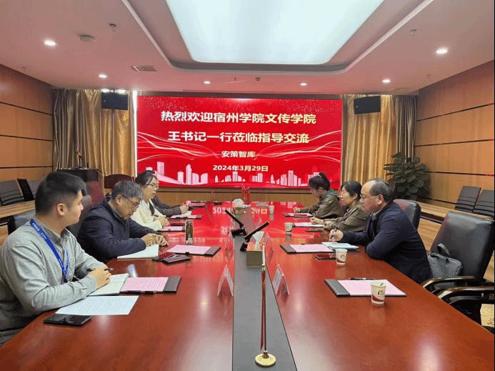 安策智库咨询有限公司高级咨询顾问袁文华热情接待我院一行。综管事业部总经理李娟就公司主营业务及宿州学院毕业生在公司就业情况进行介绍,王金岭介绍了文学与传媒学院的办学历史、专业设置、人才培养情况等。双方就实习就业基地建设、揭榜挂帅课题研究等事宜进行深入探讨,达成初步合作意向。