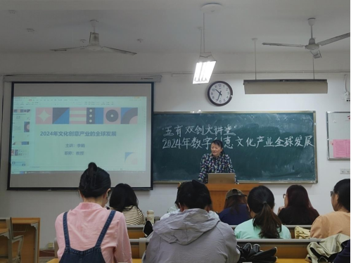 5月31日,文学与传媒学院在教学楼A103举办“五育双创大讲堂”——2024年数字创意文化产业全球发展专题讲座,讲座由文学与传媒院副院长李娟主讲。