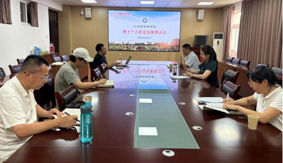 为更好发挥近三年入职博士在教学、科研和人才培养等方面的积极作用,6月19日下午,文学与传媒学院在教A303室召开了2024年度博士个人职业发展恳谈会,党委副书记、院长李月云,党委副书记、纪委书记刘影,副院长满建及新入职博士参会。会议由李月云主持。