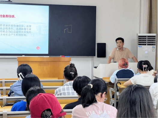9月12日下午2时许,宿州广播电视台主任记者、中国散文家协会理事、宿州市民间文艺家协会主席李晓江先生应我院邀请,在教学楼A311教室为24级新闻学学生举办了一场精彩的讲座。此次讲座旨在介绍新闻学专业的前景,明晰专业发展方向,内容丰富详实,援引清晰明确,受到了同学们的高度肯定。
