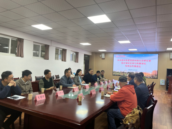 为深入实施宿州市“4510”校地联合科创行动,深化地、校、企合作,为企事业单位提供决策咨询服务,助力地、校、企高质量发展,继2023年11月首次签订合作协议以来,11月12日上午九点,宿州学院文学与传媒学院与中共宿州市委党史和地方志研究室(包含白居易研究会)就进一步合作开展深度座谈交流。中共宿州市委党史和地方志研究室新任主任吴振率队参加。