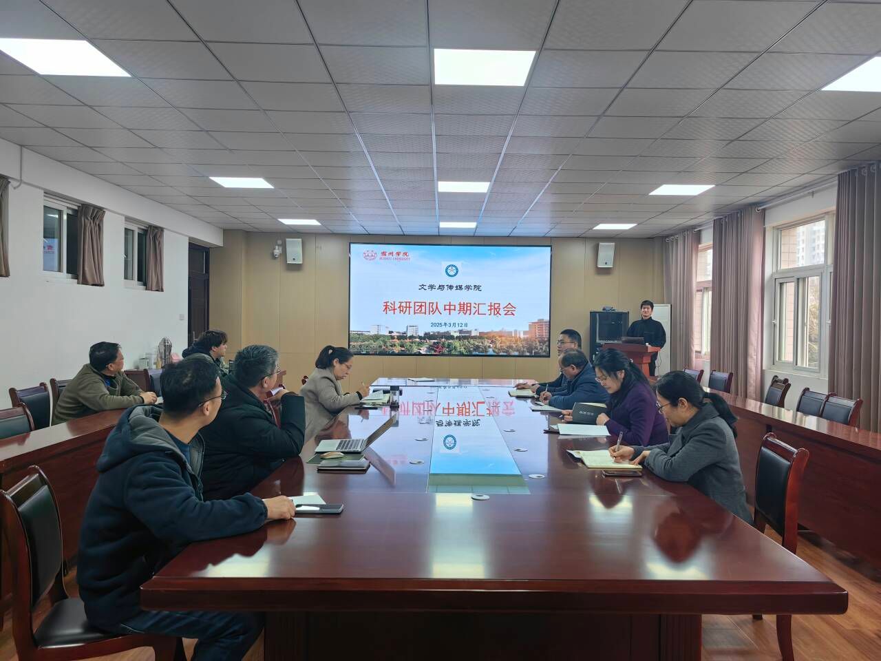 3月12日下午,文学与传媒学院在教学楼A303召开科研团队中期汇报会。文学与传媒学院党委书记王金岭,党委副书记、院长李月云,党委副书记刘影,副院长满建、学术分委会成员及科研团队负责人参加此次汇报会,会议由满建主持。