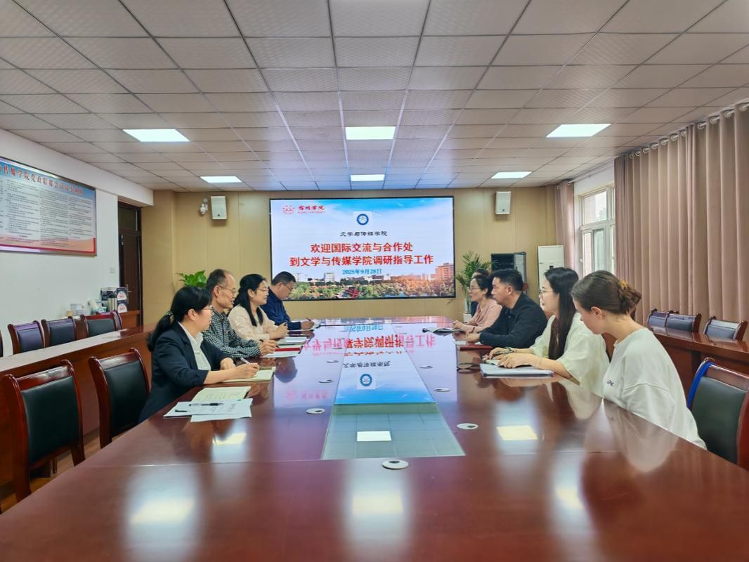 9月28日,国际交流与合作处处长安晓斌、副处长刘茜一行来到文学与传媒学院开展留学生工作调研指导,学院党政班子全体成员以及留学生所在班级辅导员参加座谈。
