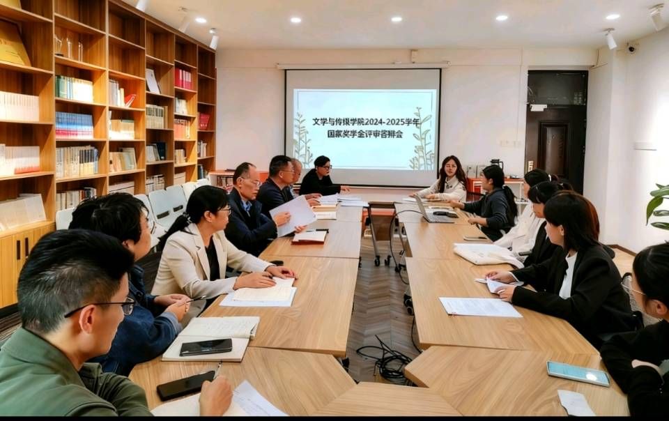 为切实做好国家奖学金的评审工作,充分发挥优秀学子示范引领作用,文学与传媒学院于9月24日下午在教学楼A405东教室举办召开2024-2025学年国家奖学金答辩评审会。会议由党委书记郝景东主持,党委副书记、纪委书记刘影、副院长满建及全体辅导员参加。