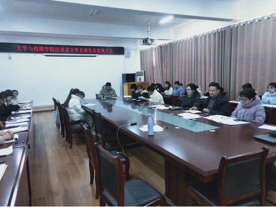 12月18日下午,文学与传媒学院汉语言文学学生党支部在东教A303召开预备党员发展大会。汉语言文学学生党支部书记琼瑶主持发展大会,支部委员、支部的全体党员、文学与传媒学院党委书记李月云、副书记王绍卫参会。