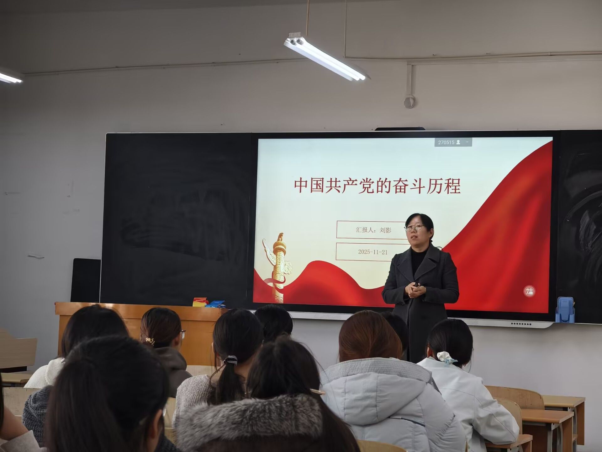 刘影带领学员重温了中国共产党的百年征程。她从建党初期的艰难求索、革命时期的浴血奋战,到建设时期的艰苦奋斗、改革开放后的蓬勃发展,再到新时代的伟大变革,通过关键历史节点、典型历史事件的梳理,生动展现了党带领中国人民从站起来、富起来到强起来的伟大飞跃,勉励学子们从党史中汲取智慧和力量,传承红色基因,坚定理想信念,勇担时代使命。